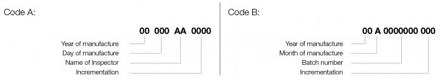 Alle Petzl-artikelen bijvoorbeeld beschikken over een individueel nummer. Daarnaast wordt in de fabriek ieder product afzonderlijk getest op de gestelde eisen. Dit unieke individuele nummer kan momenteel bij Petzl als volgt zijn opgebouwd;