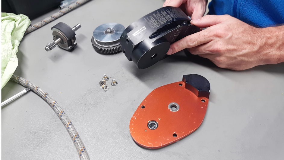 Tijdens de uitgebreide keuring halen we de Milan helemaal uit elkaar. Op die manier kunnen we losse onderdelen zoals de tandwielen goed onderzoeken. Vuil en vervormingen vallen dan ook direct op. We meten de rem en het remhuis op om de slijtage te kunnen bepalen en we controleren of de Milan met speciaal vet gesmeerd moet worden.