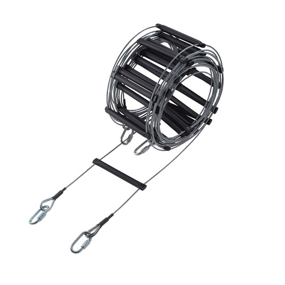 Dankzij de 3 mm dikke verzinkte staalkabel vormt deze ladder zich eenvoudig rond obstakels en is hij eenvoudig te transporteren.