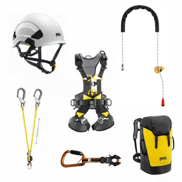 - 1x Helm, 1x Integraalharnas, 1x Frog Connector, 1x Positioneerlijn, 1x Dubbele Elastische Vallijn, 1x Rugtas