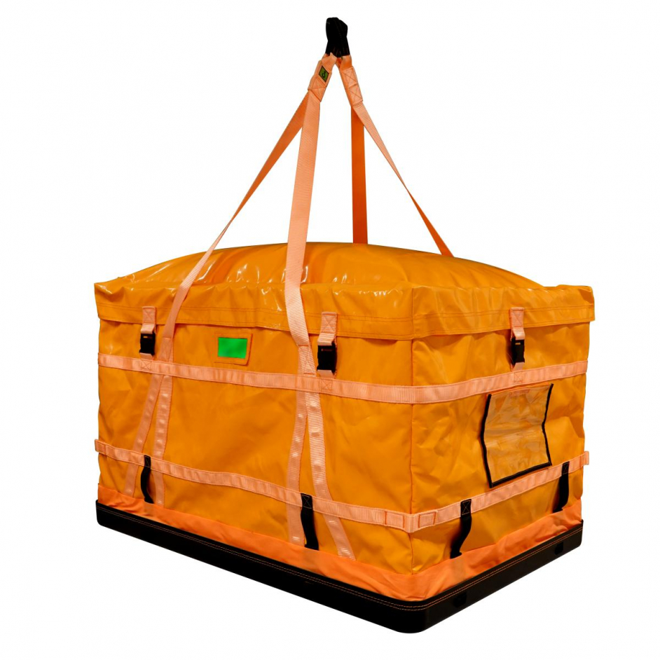 Le EMG 5618 Giant Lifting Bag with Inflatable Lid est un sac de levage robuste, conçu pour un usage professionnel dans les secteurs du rope access, du bâtiment et de l’industrie. Fabriqué en tarpaulin de 0,75 mm résistant à l'eau, il permet de soulever en toute sécurité des charges jusqu'à 1000 kg (CMU) pour un volume de 930 litres. Sa conception innovante inclut un couvercle gonflable qui évacue efficacement l’eau de pluie. Les parois latérales rigides amovibles et le fond en PVC mousse offrent une protection optimale et une bonne répartition de la charge. Doté de sangles de levage en polyamide de 50 mm, d’une pochette transparente amovible pour documentation A4 et de boucles pratiques en plastique. Conforme à EN 1492-1 et ISO 21898.