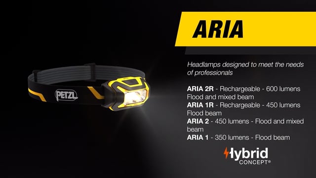 Met een lichtopbrengst van 450 lumen is de Petzl Aria 1R een krachtige hoofdlamp speciaal ontwikkeld voor professionals. De lamp is IP67 water- en stofdicht, heeft een compacte vormgeving en is makkelijk te bedienen. In tegenstelling tot de Petzl Aria 1 wordt de Petzl Aria 1R standaard met een oplaadbare Petzl Core batterij geleverd.