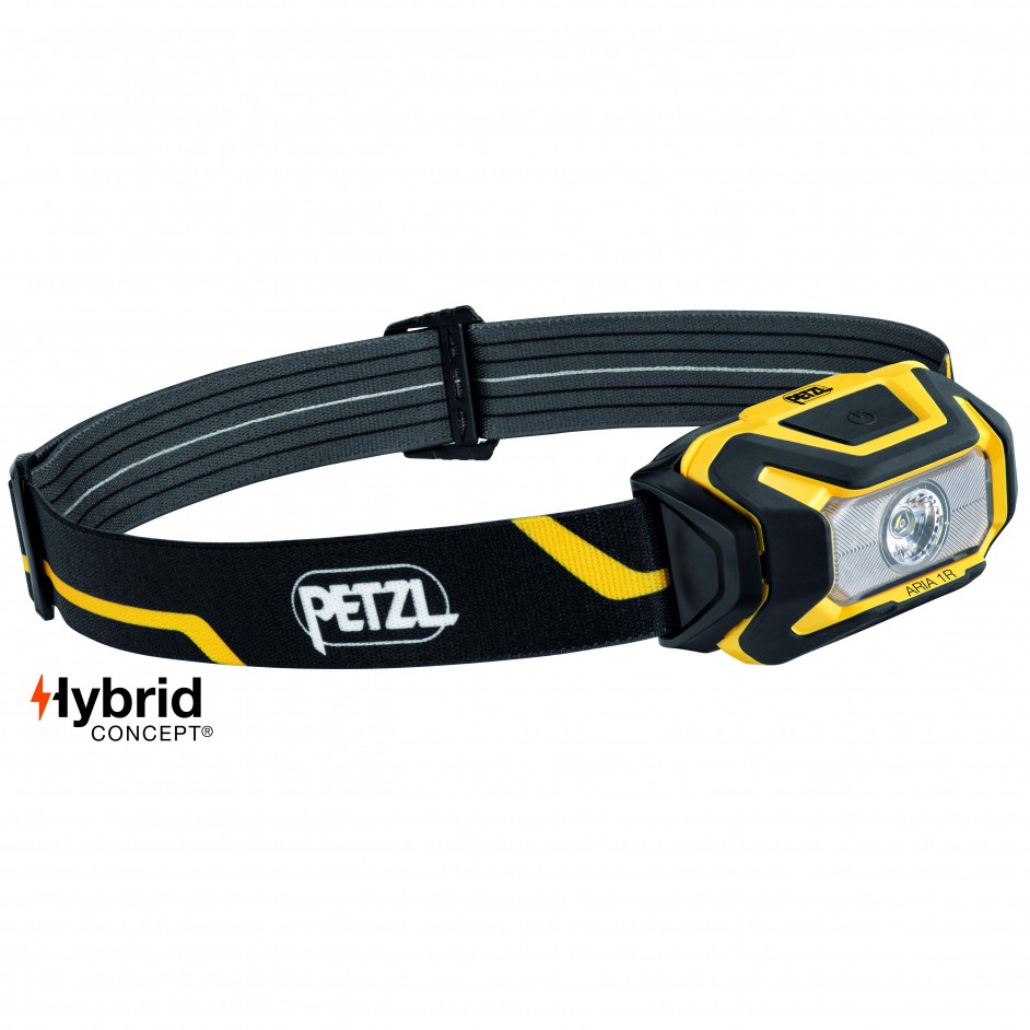 Standaard wordt de Aria 1R geleverd met de Petzl CORE-accu (1250 mAh, 3,6 V, 4,5 Wh), die via USB oplaadbaar is in circa 3,5 uur. Door het HYBRID CONCEPT kan de lamp ook gevoed worden met drie AAA/LR03-batterijen (alkaline, lithium of Ni-MH oplaadbaar). De lamp detecteert automatisch de gebruikte energiebron en past de prestaties aan, met tot 475 lumen op CORE en 350 lumen op AAA-batterijen in MAX POWER-modus.