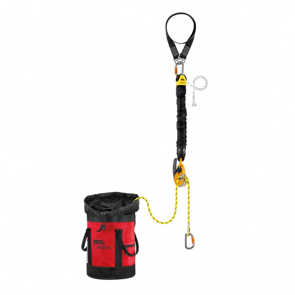 - Inbegrepen: JAG SYSTEM takelblok, RING OPEN ring, I’D EVAC afdaalapparaat, AXIS touw, CONNEXION FIXE 150 cm ankerband, BUCKET tas