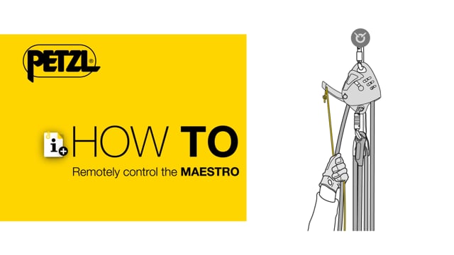 De Petzl Maestro is voorzien van een inbindpunt in de hendel van het toestel. Dit punt is geschikt voor het vastmaken van een werplijn, de Petzl Airline. Maak een stopknoop aan het uiteinde van de werplijn zodat de lijn niet door het inbindpunt van de hendel heen getrokken kan worden. D.m.v. deze toevoeging kan de Petzl Maestro takel- en afdaalset op afstand bediend worden, waardoor de bediener beter zicht kan houden op de persoon die hij laat afdalen. NB. Gebruik 1 hand om zowel het touw vast te houden als de werplijn, op die manier kan de afdaling veilig en beheerst uitgevoerd worden.