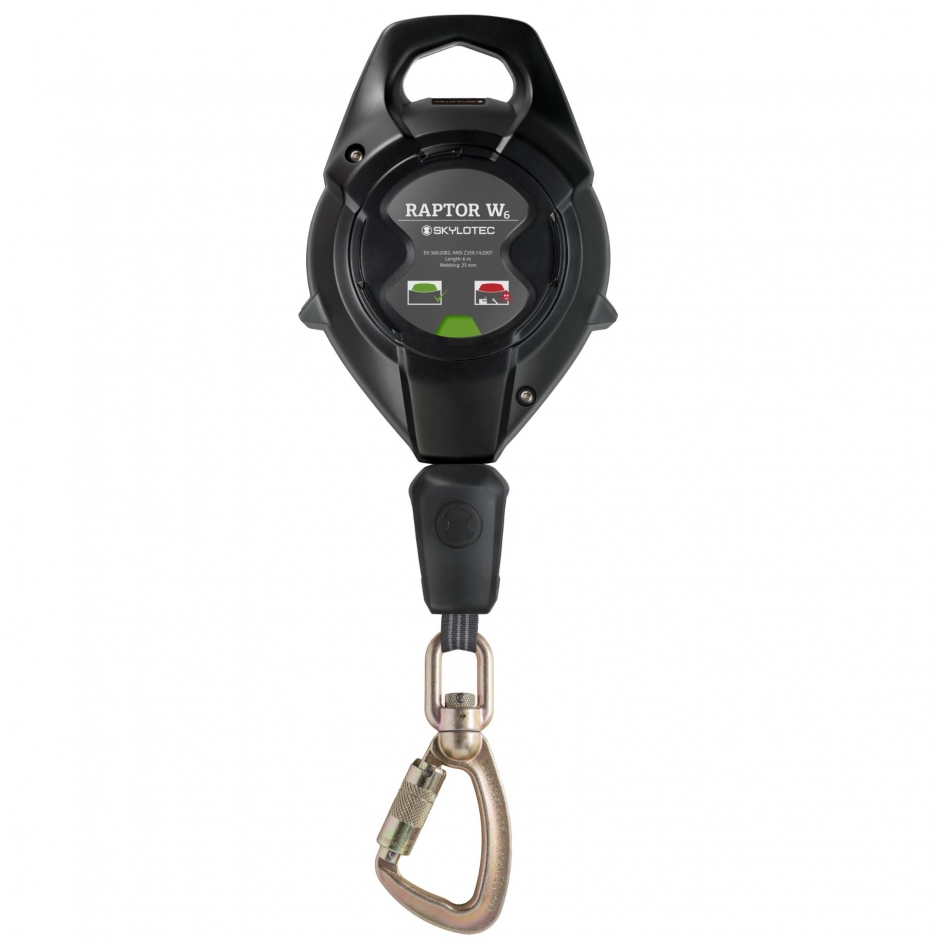De Skylotec Raptor W is een zelfintrekkend valstopapparaat met een 8 m tekstiellijn, automatische blokkeerfunctie en geïntegreerde valindicatoren. Het apparaat is gecertificeerd volgens EN 360:2002 en is ontworpen voor professioneel gebruik bij werken op hoogte en in de diepte, met een maximale gebruikersgewicht van 140 kg en een maximale levensduur van 20 jaar. De modulaire opbouw en energie-absorberende inloopdemper zorgen voor efficiënte keuringen, lagere onderhoudskosten en verhoogde veiligheid.
