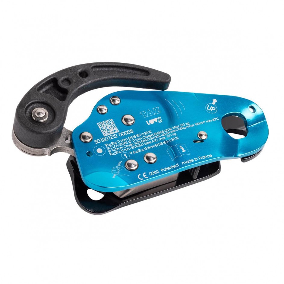 De LOV3 kan op het touw geïnstalleerd of losgehaald worden zonder de karabiner los te hoeven maken